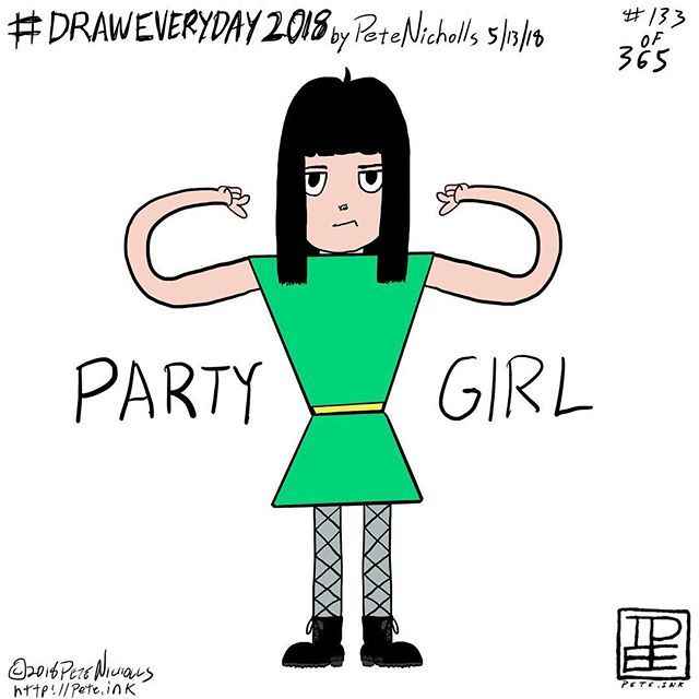 Going in a new direction with my #DrawEveryDay #drawing for 5/13/18–it’s #PartyGirl! She probably represents my inner monologue when I go to parties. I dress up and show up but...π #DrawEveryDay2018 #drawings #cartoons https://t.co/sn5iqESCE9